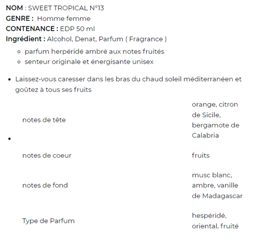 Bientôt disponilbe !Sweet tropical - eau de parfum n°13