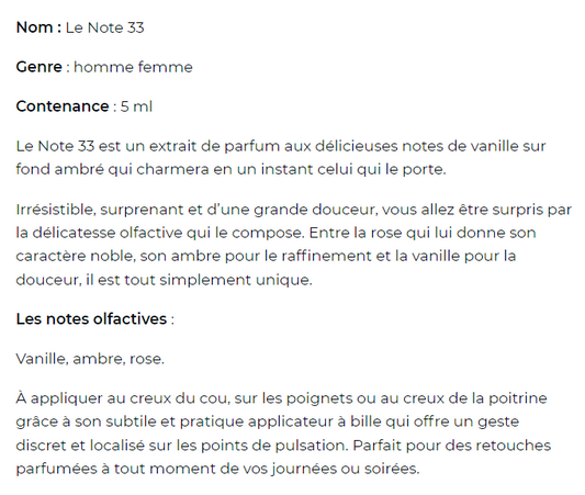 20% DE REDUCTIONNote 33 - extrait de parfum