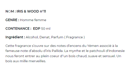 Bientôt disponilbe !Iris & wood - eau de parfum n°11