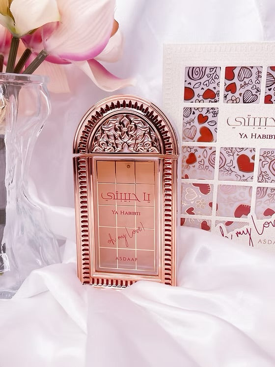 Ya Habibti Oh My Love ! d’Asdaaf est une ode à la féminité lumineuse et romantique. Ce parfum floral, musqué et oriental s’adresse aux femmes qui aiment conjuguer élégance et sensualité dans leur quotidien. Élégant et raffiné, il complète l’univers olfactif d’Asdaaf.